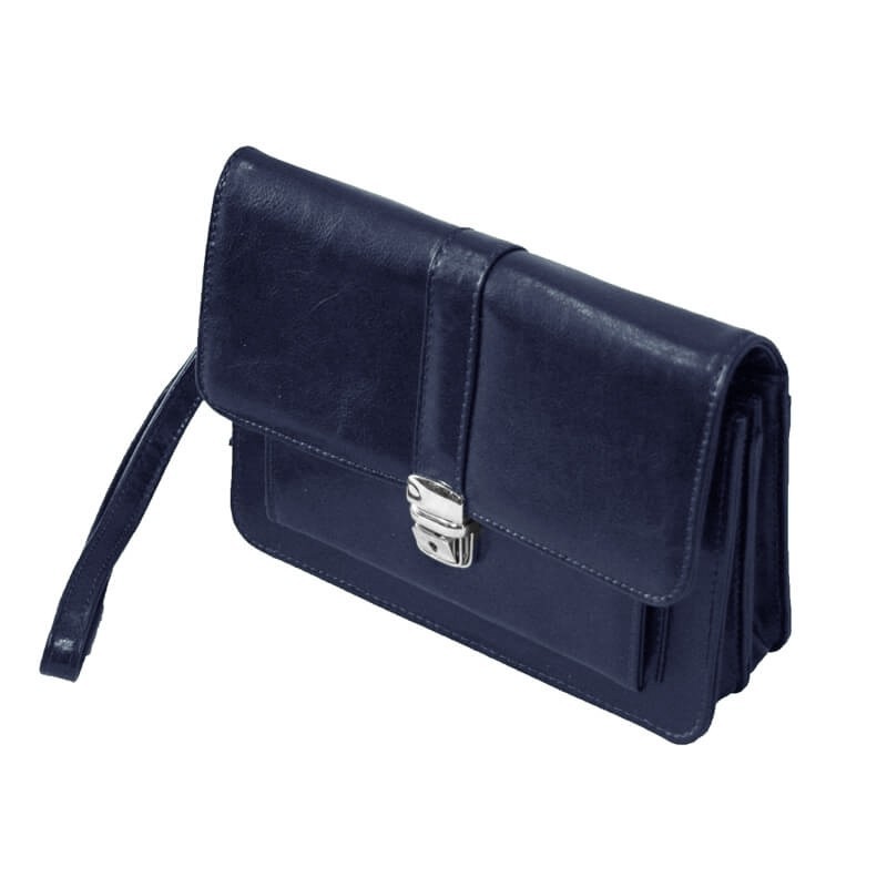 Męska skórzana saszetka z zapinką w kolorze granatowym